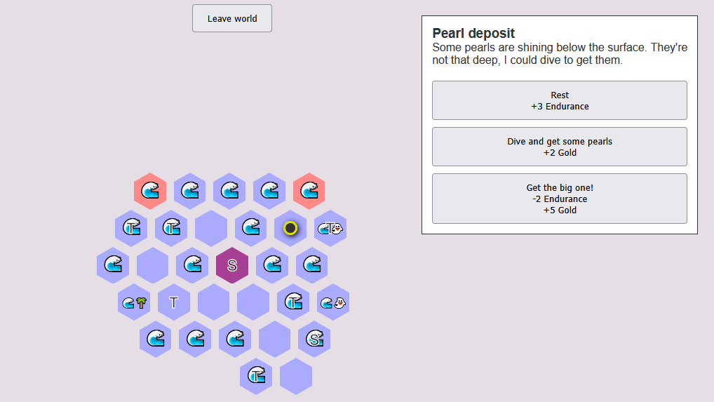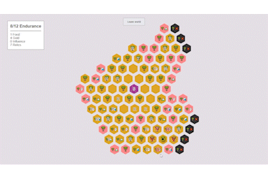 ⚠️ Not workingThe general Charisma Reduces a random cost by 1 in events choices Curious hunter Movement 1 -1 Endurance cost to cross 🌴 terrain The strange creature Movement 2 -1 Endurance cost to cross 🌴 terrain The monolith Gather (Relics) +1 Relic when earning Relics The archaeologist's cabin [Action] Study -2 Relics → Reveal a random close Curiosity The explorer Sharp eye Hidden Curiosities are now seen - Maps are generated randomly each time you launch the game. If a particular instance feels impossible to finish, you could reload the page to try with a different set of maps.